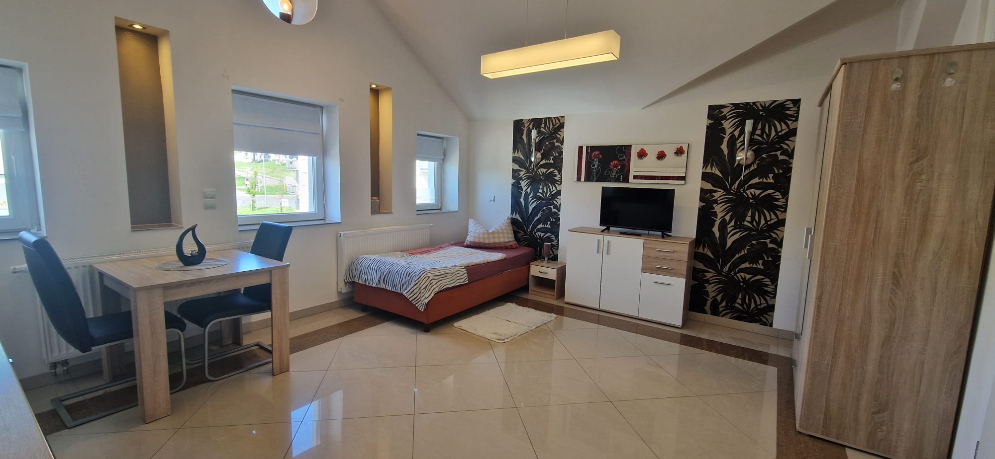 Die Wohnung wurde im 2024 neu ausgebaut und hat einen eigenen TV im Zimmer. Waschmaschinen befinden sich im Keller.